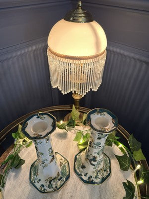 Masons GREEN CHARTRUSE Candlestick X 2 floral and foliage design