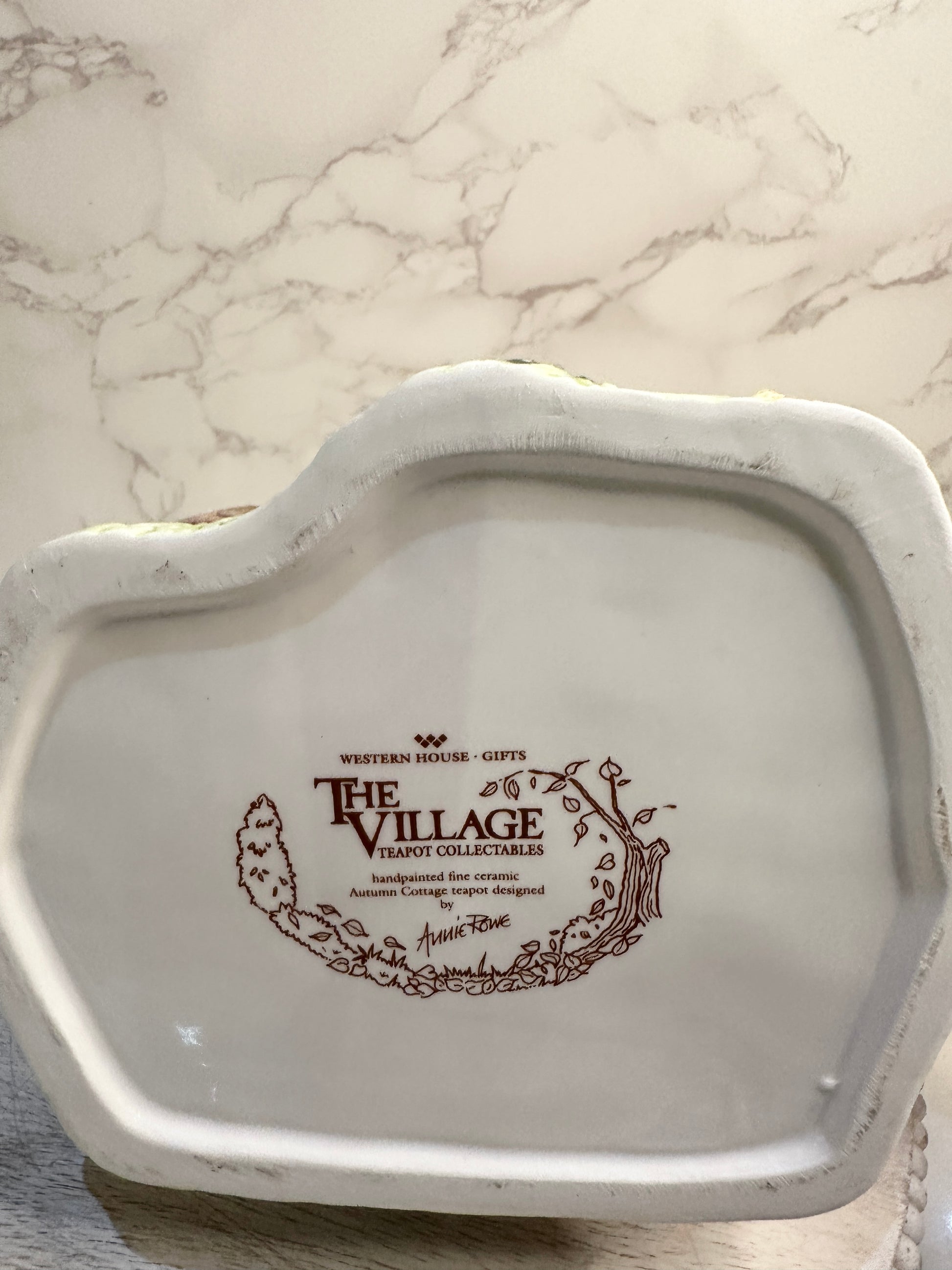 The Village “Autumn Cottage” Teapot by Annie Rowe – Handpainted Ceramic Collectible