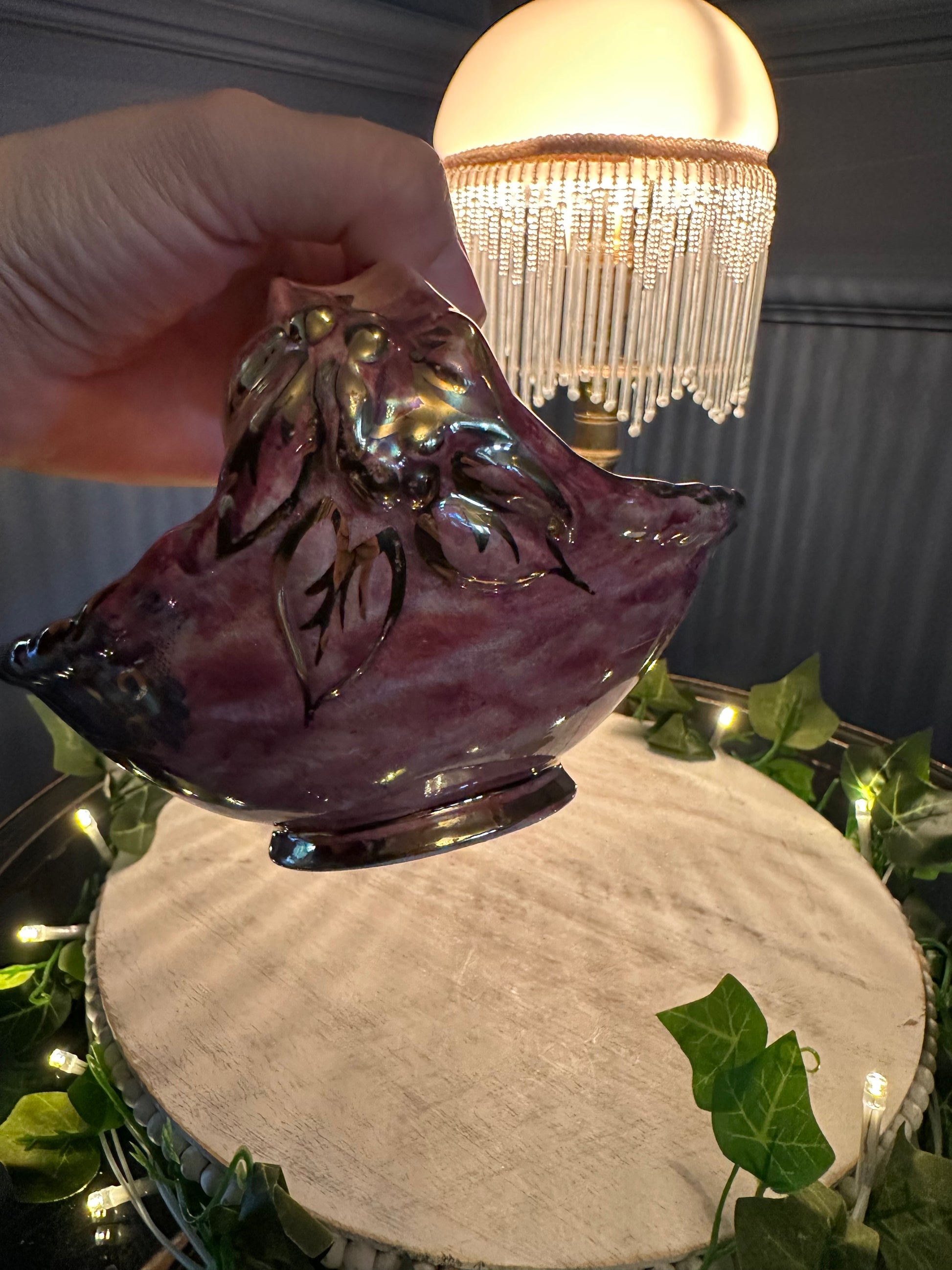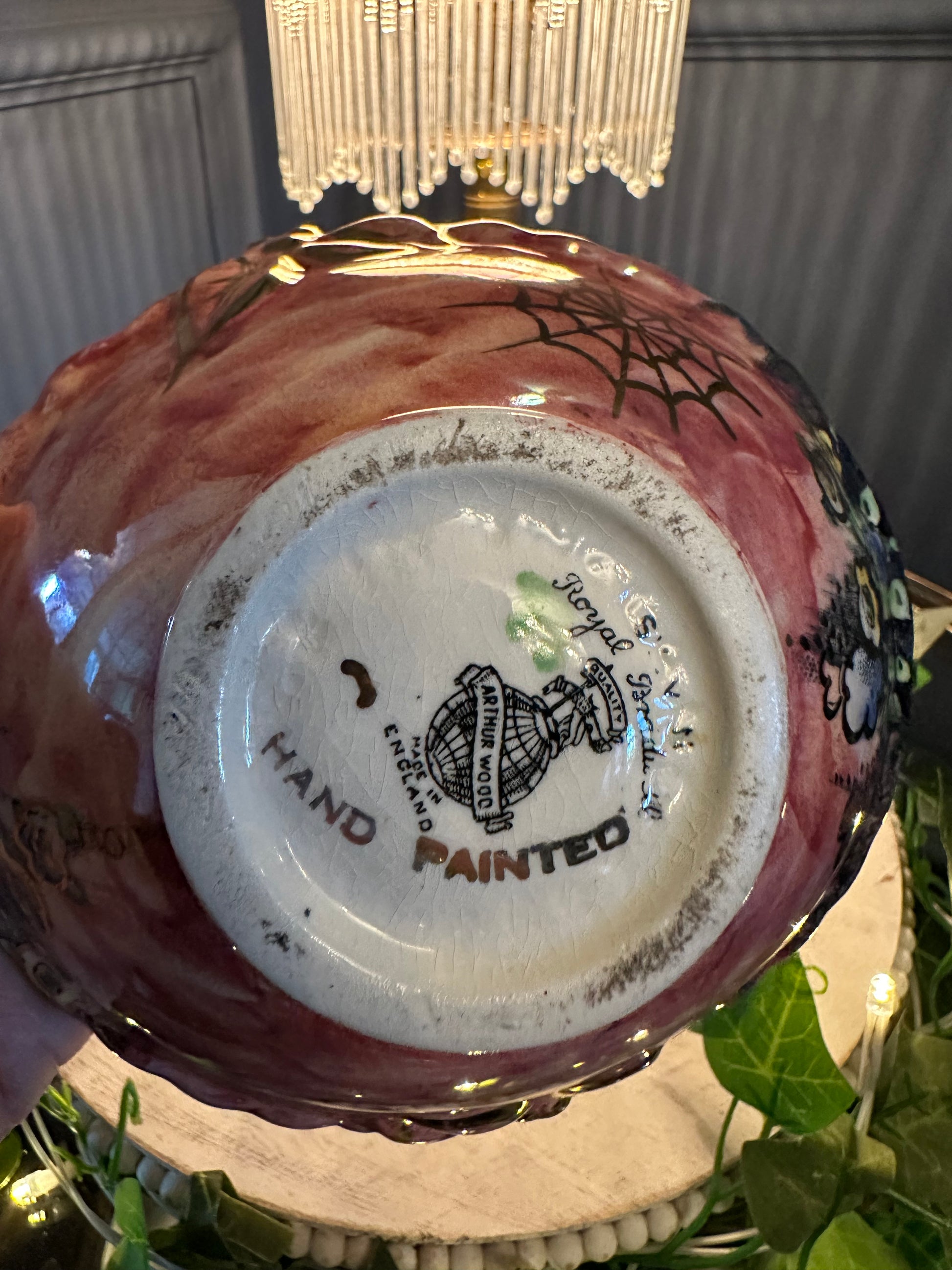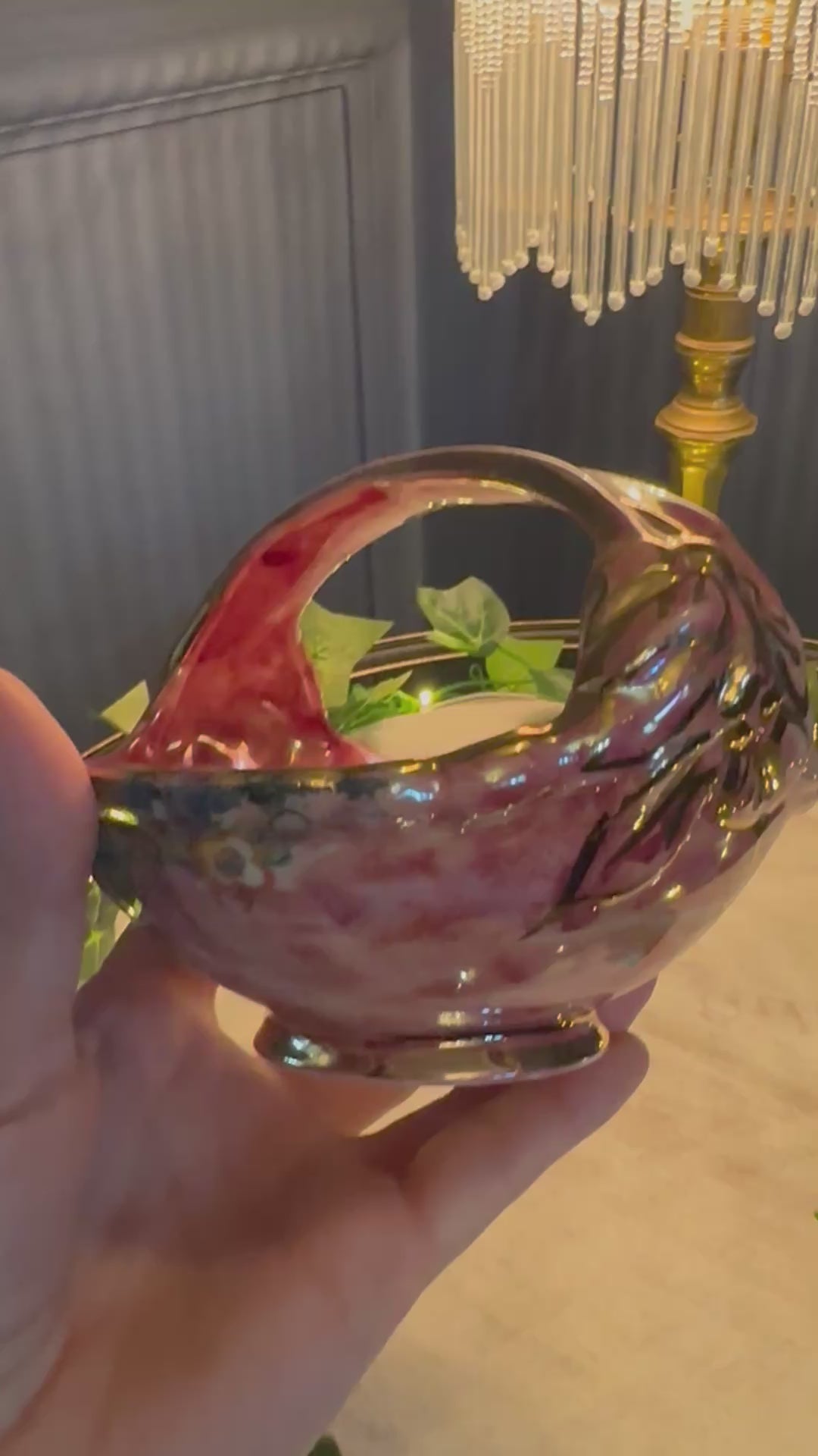 Add a touch of 1940s charm to your home with this exquisite Vintage Arthur Wood Royal Bradwell Pink Art Deco Basket. Handcrafted in England, this decorative ceramic basket features a striking marbled pink glaze with rich gold detailing, perfectly capturing the glamour of the Art Deco period.